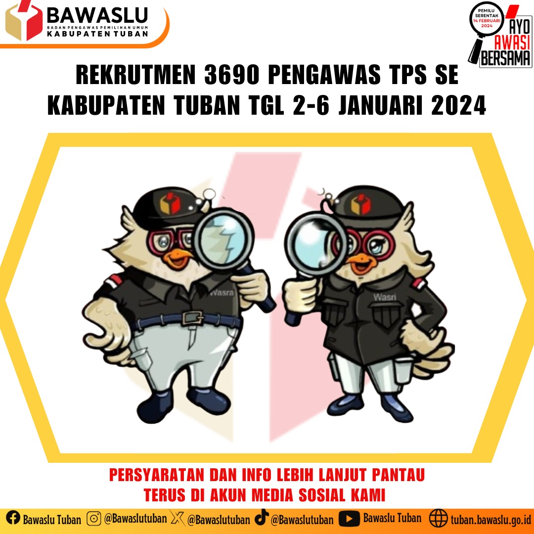 The post Rekrutmen Calon Pengawas TPS Pemilu 2024 Dimulai appeared first on TubanNews.id.